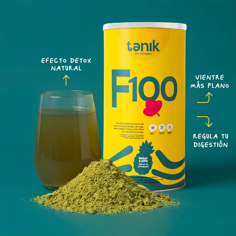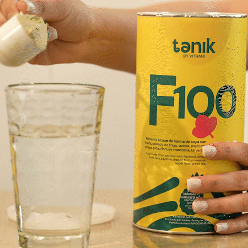Alimento en polvo a base de proteína de soya con salvado de trigo, linaza, avena, psyllium, pitaya, piña, alcachofa, fibra de manzana, té verde y Stevia.